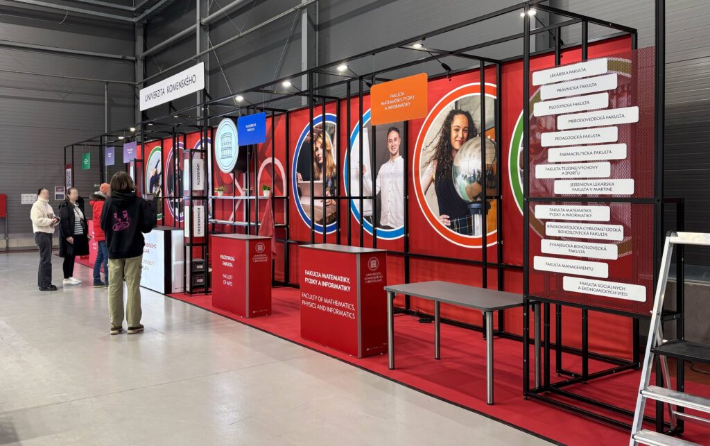 Der Stand ist mit zwei maßgefertigten Präsentationstheken ausgestattet. Beide verfügen über Stauraum zur Aufbewahrung von Give-aways, Katalogen und anderen Werbematerialien, die zu einer Messe einfach dazugehören.